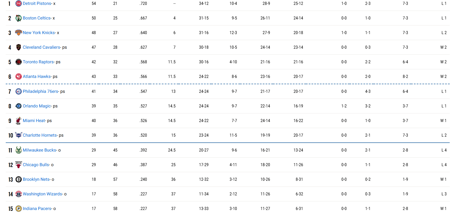 Βαθμολογία Ανατολικής Περιφέρειας