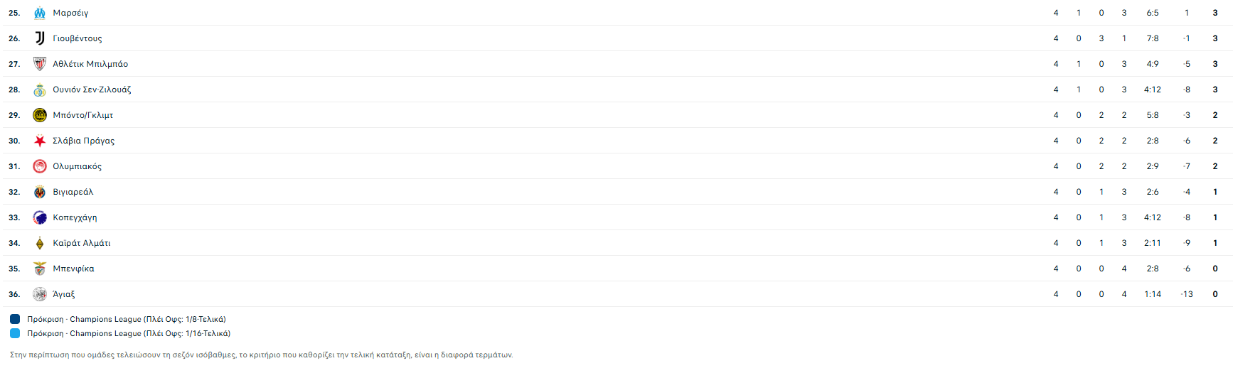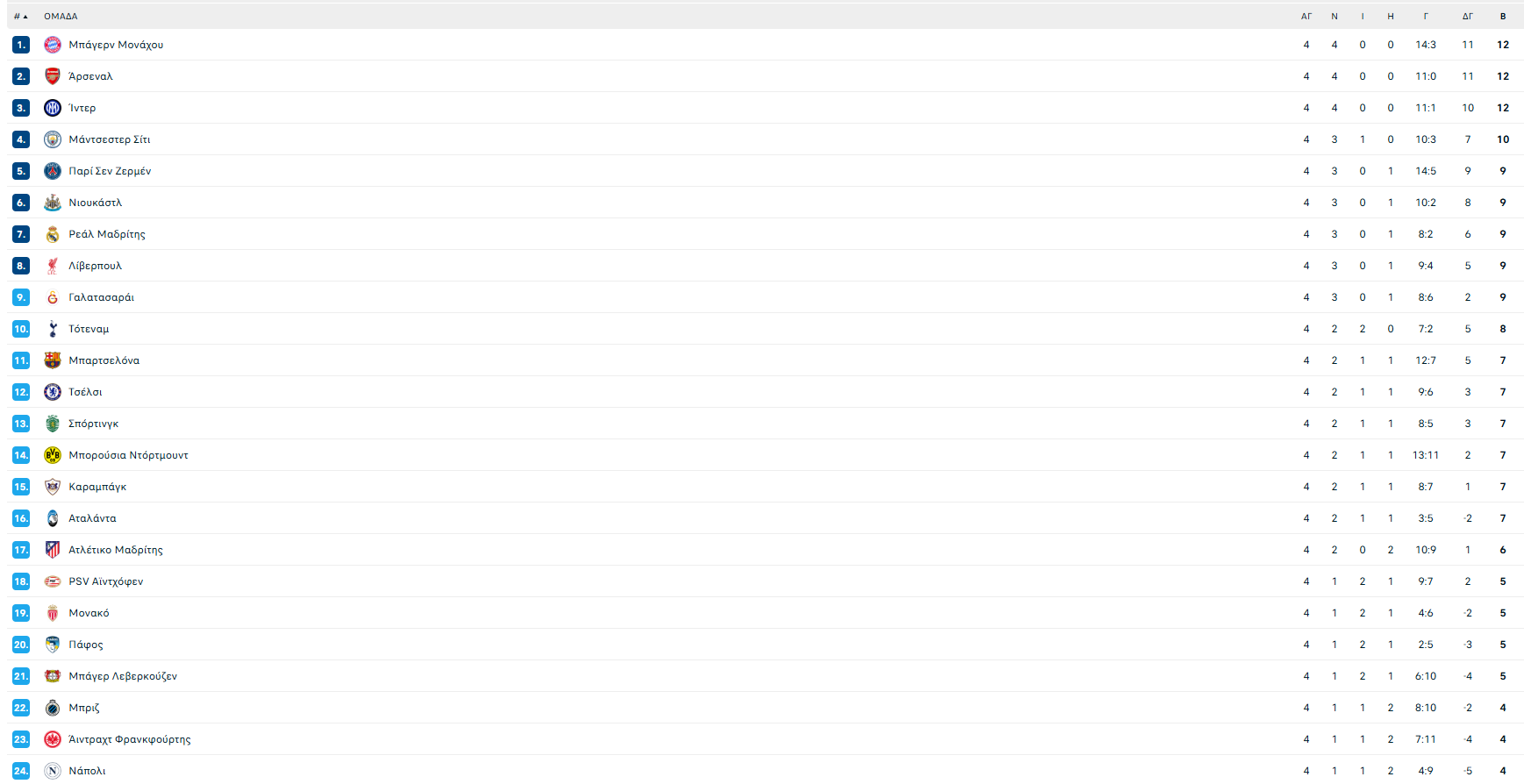Ολοκληρώθηκε το βράδυ της Τετάρτης 5/11 η 4η αγωνιστική της League Phase του Champions League.