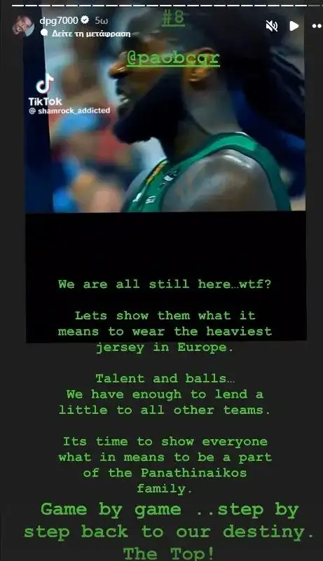 Στον πολυαγαπημένο του Instagram ανέβασε μια σειρά από story στα οποία ανέβασε έναν έναν τους παίκτες του τριφυλλιού, καθώς και τον Τούρκο τεχνικό με την γροθιά υψωμένη. Στο τέλος ανέβασε ακόμη μία φωτογραφία που έγραφε: «Ας τους δείξουμε τι σημαίνει να φοράς την πιο βαριά φανέλα στην Ευρώπη»