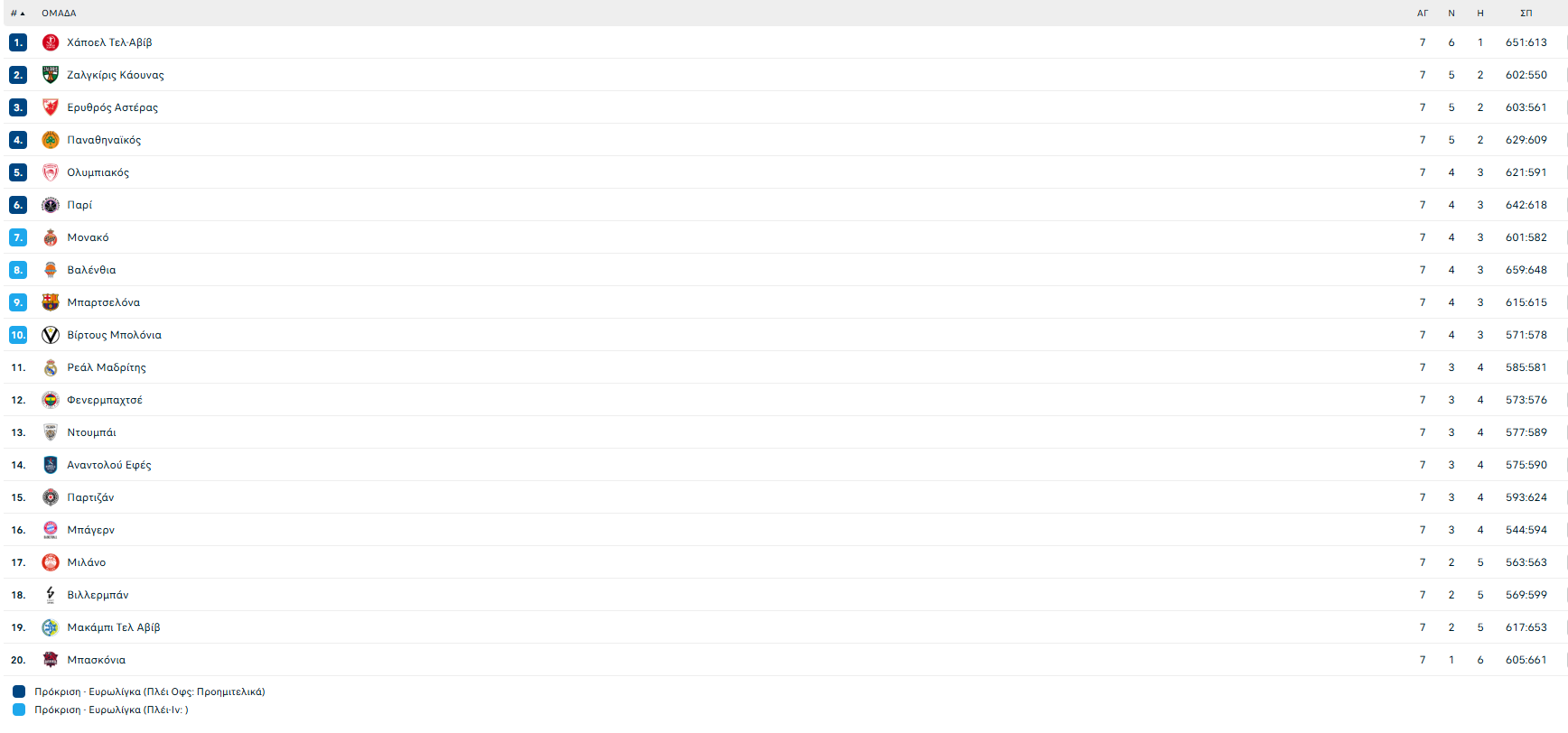 Ολοκληρώθηκε το βράδυ της Τετάρτης 29/10 η 7η αγωνιστική της Euroleague, με δυο αγώνες.