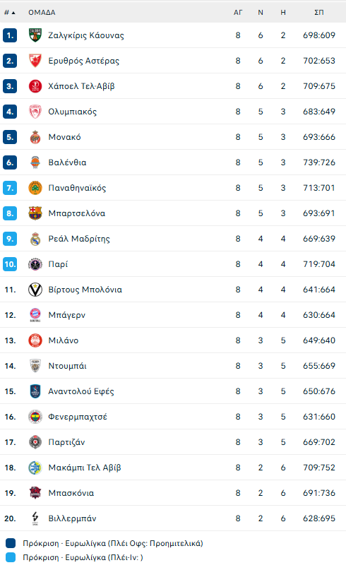 Το πρόγραμμα της 9ης αγωνιστικής της Euroleague