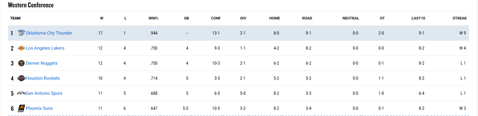 Η εμφατική αυτή νίκη οδεύει το Λος Άντζελες όλο και πιο κοντα στην κορυφή της Δύσης μιας και το σκορ τους «γράφει» πλέον 12-4. Ατάραχοι οι Οκλαχόμα παραμένουν στην 1η θέση με σκορ 17-1.