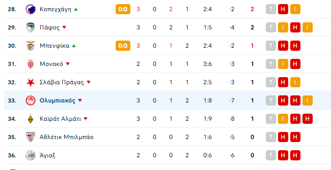 Κάπως έτσι ο Ολυμπιακός έμεινε στον ένα βαθμό που πήρε στην πρεμιέρα εντός έδρας με την Πάφο και είναι στην 33η θέση της βαθμολογίας της διοργάνωσης.