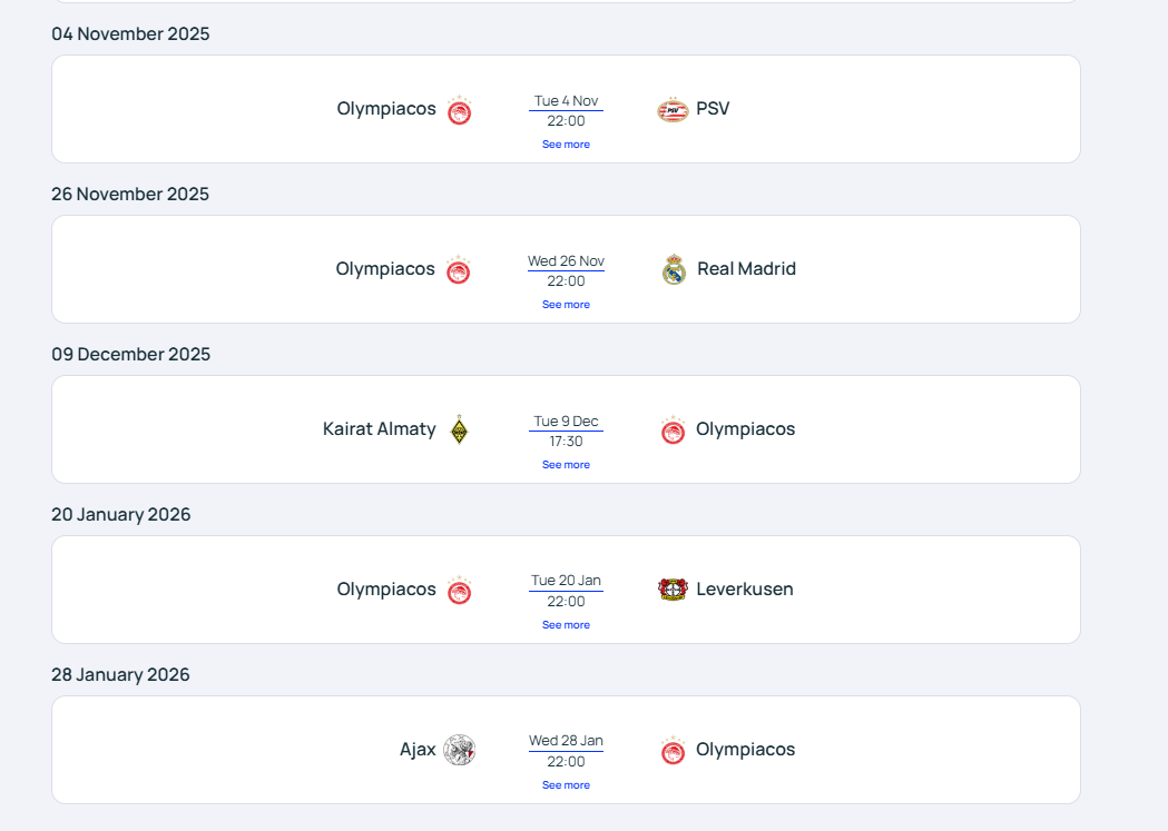 Το πρόγραμμα του Ολυμπιακού ως το φινάλε της League Phase του Champions League
