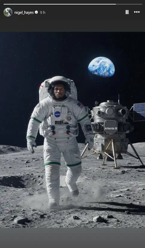 Μετά το τέλος της αναμέτρησης με τους Μονεγάσκους, ο φόργουορντ των «πρασίνων» ανάρτησε ένα story στον προσωπικό λογαριασμό στο Instagram με τον ίδιο να βρίσκεται στο διάστημα. Εμπνευσμένο φυσικά και από την πρόσφατη αποστολή του πληρώματος «Artemis II» στην σελήνη.