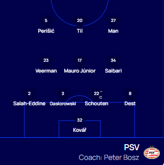 Από την πλευρά της, η Αϊντχόφεν θα ξεκινήσει την αναμέτρηση με τους: