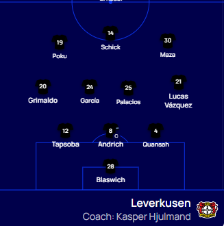 Παράλληλα, γνωστή έγινε και η ενδεκάδα της Λεβερκούζεν, που θα επιδιώξει να πάρει το θετικό αποτέλεσμα.