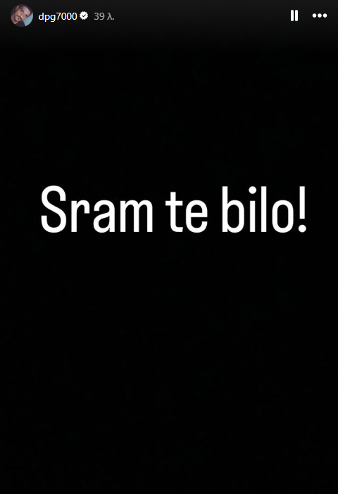 Συγκεκριμένα, ο ισχυρός άνδρας των «πρασίνων» με story του στο Instagram έγραψε «Sram te bilo» που στα ελληνικά σημαίνει «Ντροπή σας» και άπαντες καταλαβαίνουν πως αυτό πήγαινε στον ισχυρό άνδρα της Euroleague Ντέγιαν Μποντιρόγκα.