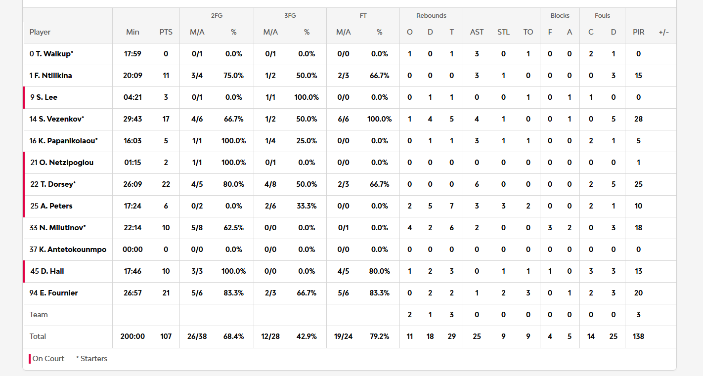 Τα στατιστικά των παικτών του Ολυμπιακού
