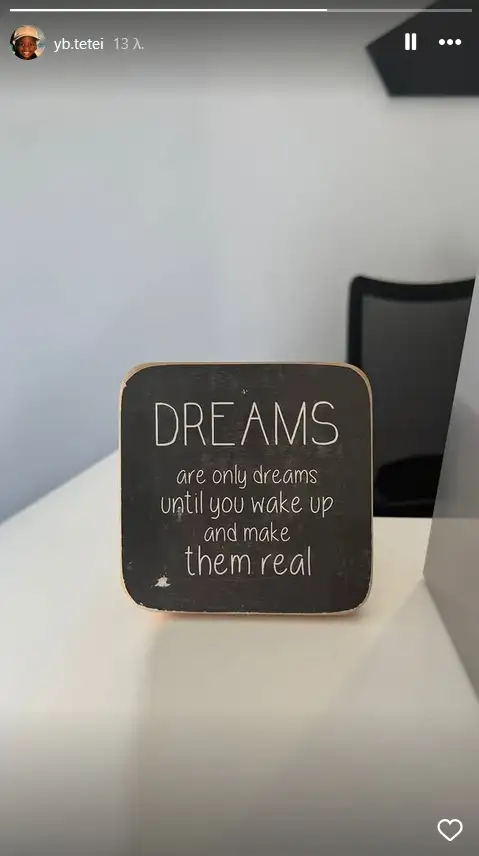 “Τα όνειρα παραμένουν όνειρα μέχρι να ξυπνήσεις και να τα κάνεις αληθινά” ανέφερε σε ανάρτησή του ο Ανδρέας Τεττέη.