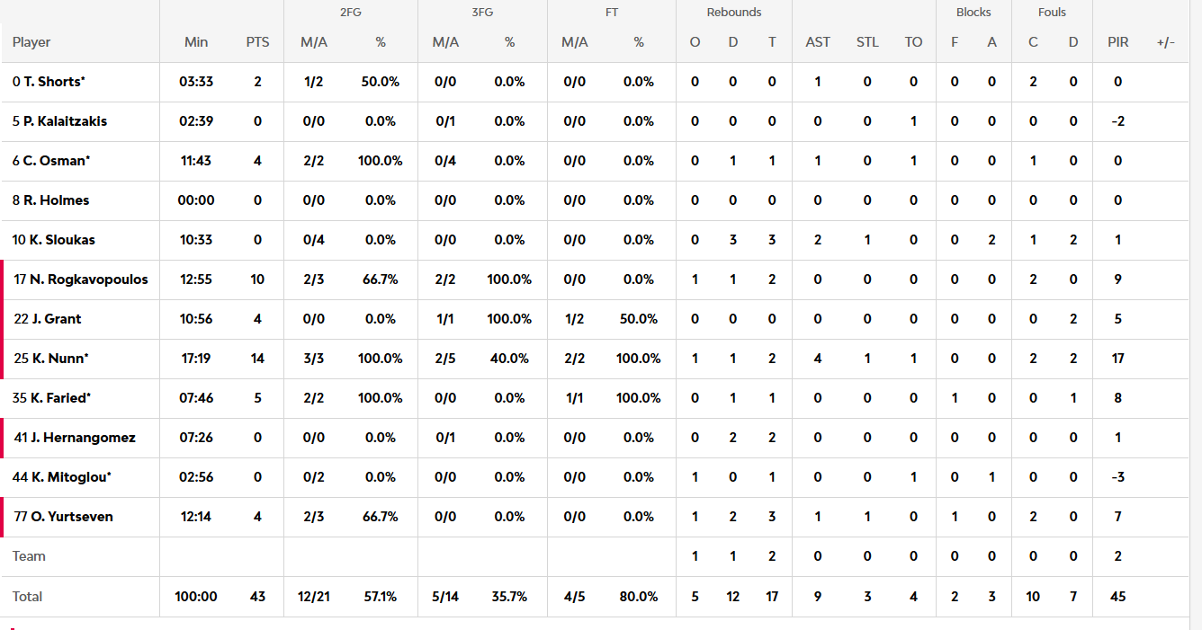 Παναθηναϊκός AKTOR και Ολυμπιακός πήγαν με την ισοπαλία (43-43) στα αποδυτήρια στο ντέρμπι για την Euroleague.