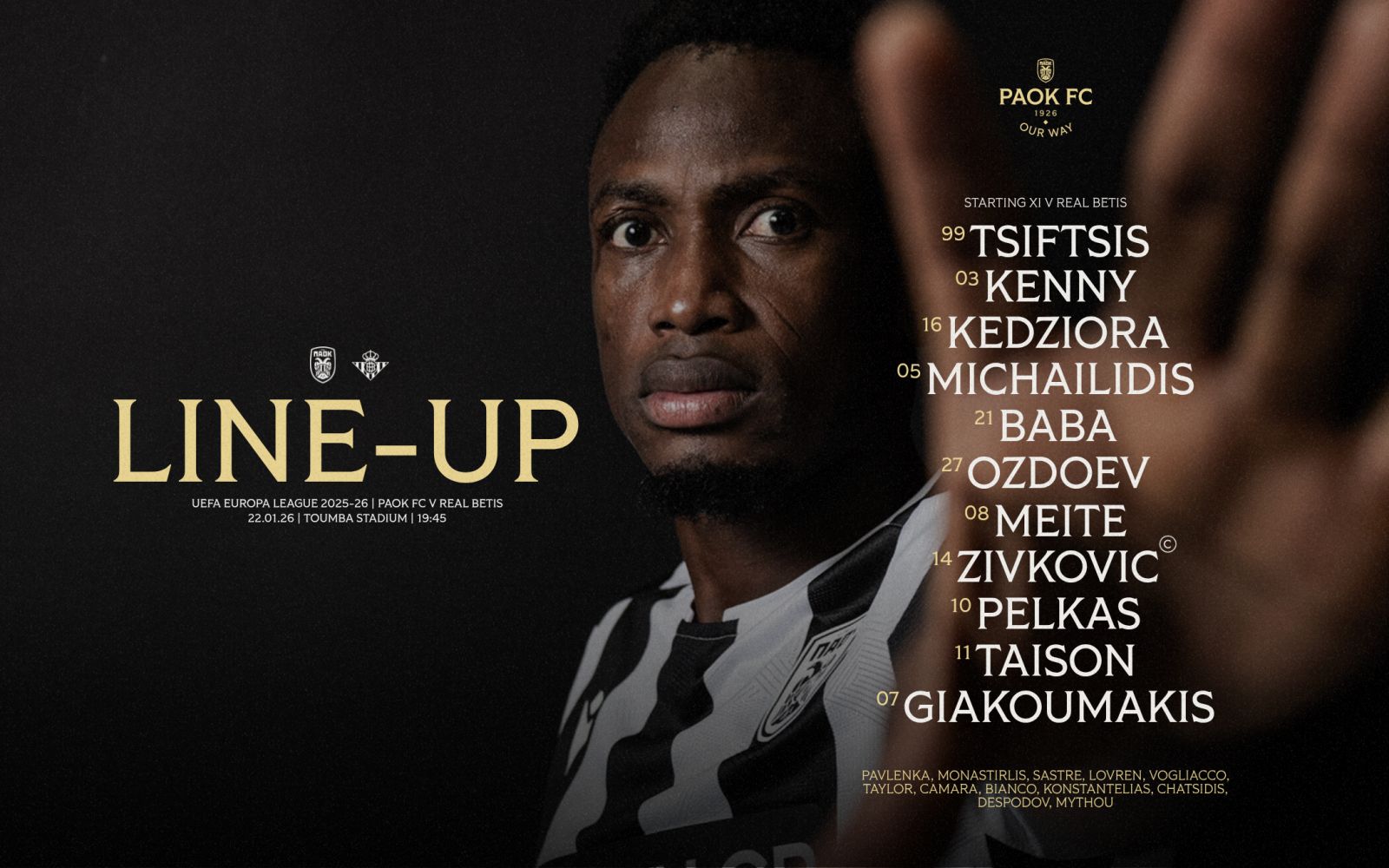 Ο ΠΑΟΚ υποδέχεται στην κατάμεστη Τούμπα την Ρεάλ Μπέτις για την προτελευταία αγωνιστική της League Phase του Europa League.