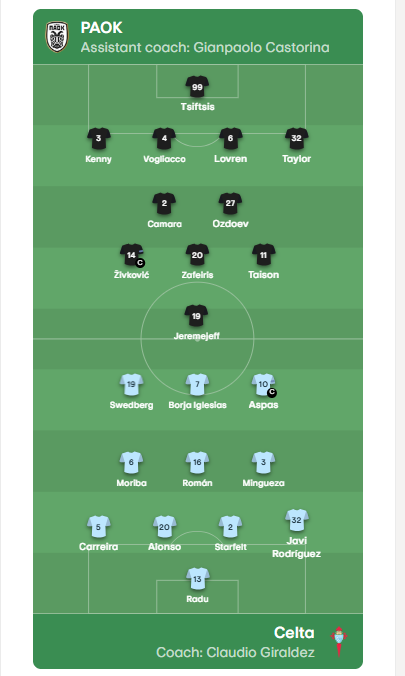ΠΑΟΚ – Θέλτα: Οι ενδεκάδες της αναμέτρησης