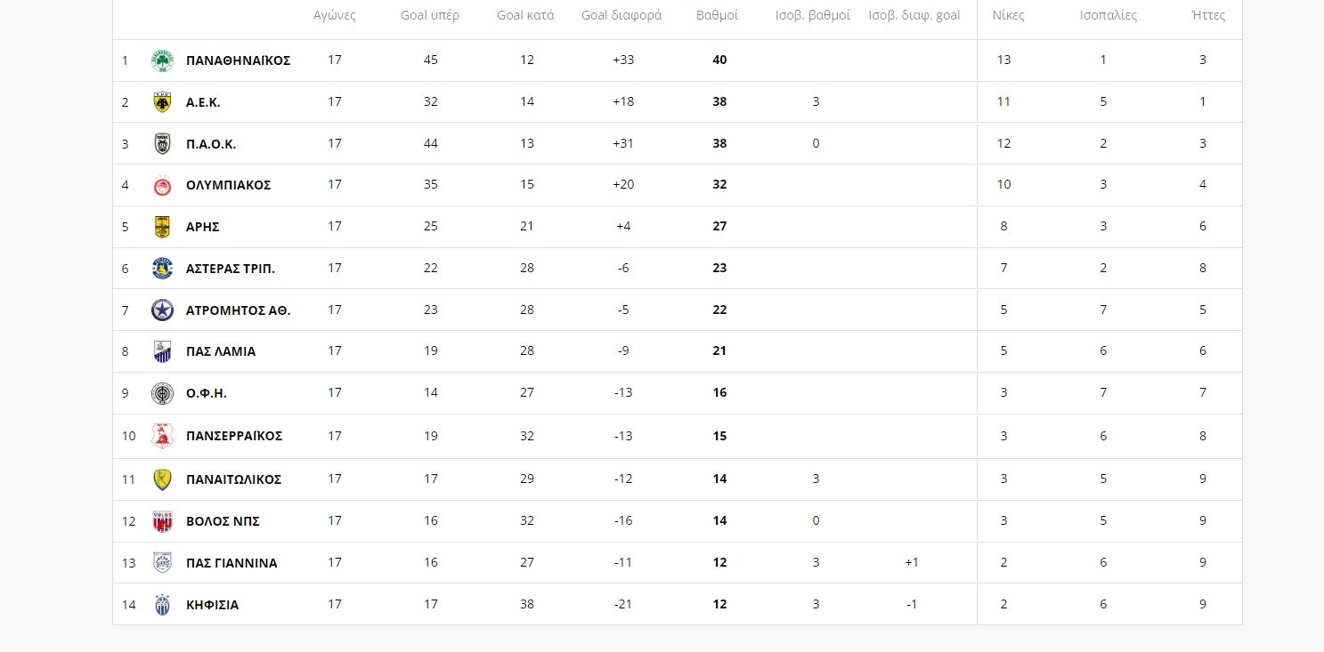 Το πρόγραμμα και τα αποτελέσματα της 17ης αγωνιστικής