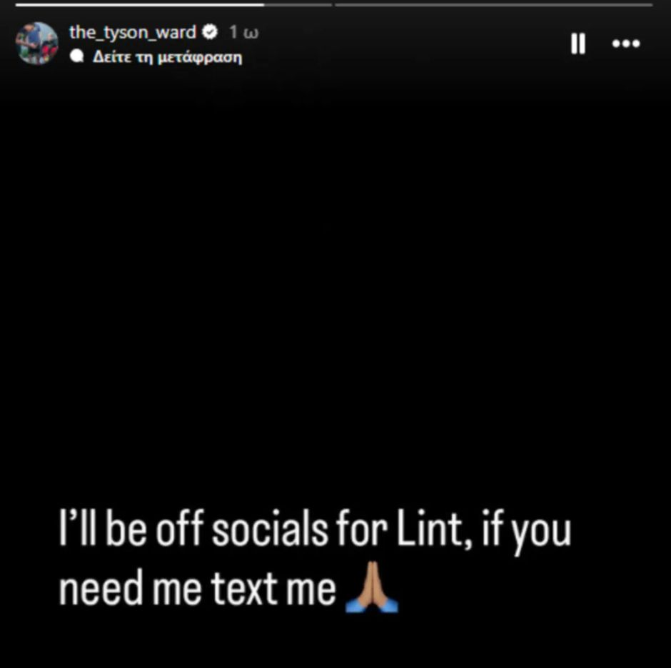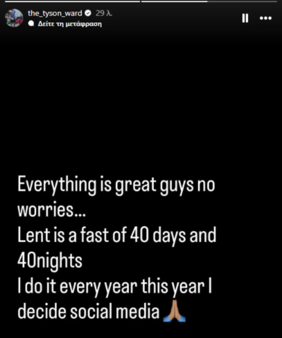Σε μία κίνηση που πραγματοποιεί κάθε χρόνο προχώρησε ο Τάισον Γουόρντ, απενεργοποιώντας τα social media του για τις επόμενες 40 ημέρες.