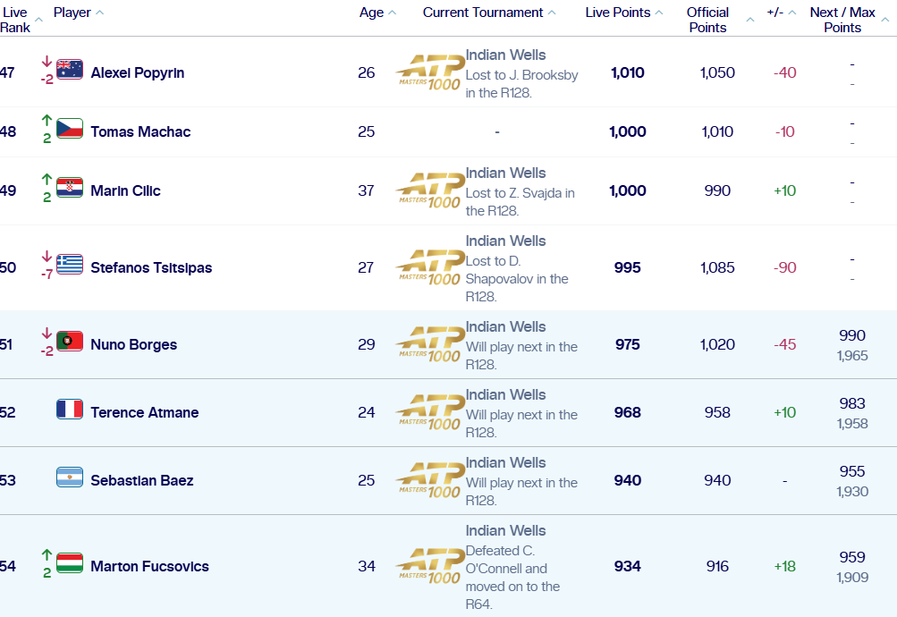 Το γεγονός αυτό σημαίνει ότι ο Τσιτσιπάς θα βρεθέι και εκτός του Τop 50 της παγκόσμιας κατάταξης, με την δεδομένη στιγμή να στέκεται ακριβώς στο Νο50.