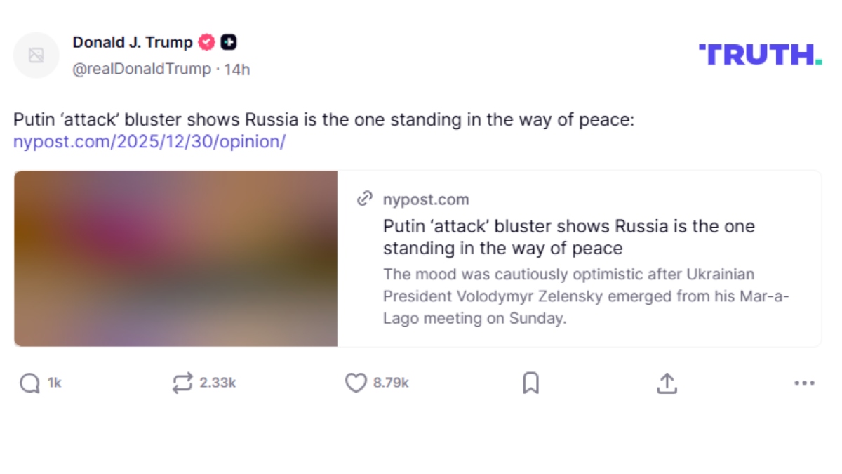 Μετά την ενημέρωση από τον επικεφαλής της CIA, ο Τραμπ φάνηκε να τηρεί πιο επιφυλακτική στάση. Την Τετάρτη ανήρτησε στην πλατφόρμα Truth Social σύνδεσμο προς άρθρο γνώμης της New York Post με τίτλο «Η μπλόφα Πούτιν για “επίθεση” δείχνει ότι η Ρωσία είναι αυτή που εμποδίζει την ειρήνη».