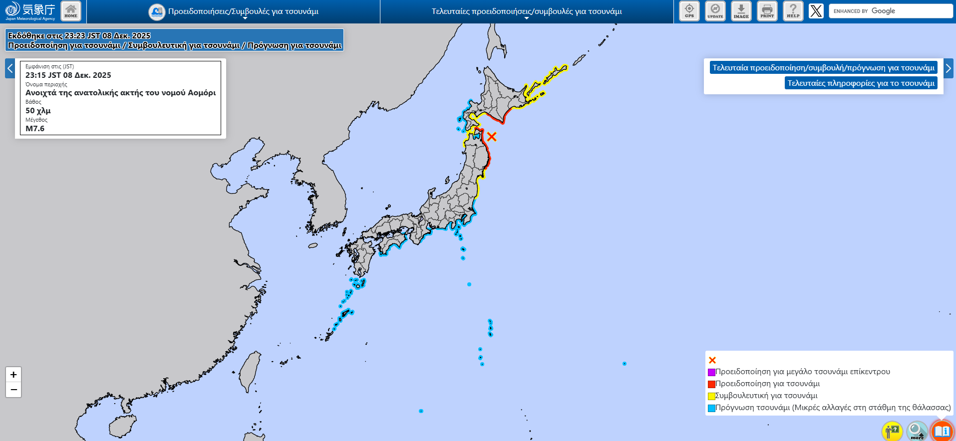 Ισχυρός σεισμός 7,6 Ρίχτερ σημειώθηκε το μεσημέρι της Δευτέρας 8/12 στην Ιαπωνία σημαίνοντας συναγερμό στις Αρχές.