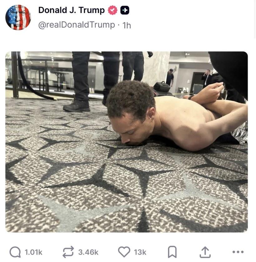 Λίγες ώρες μετά το συμβάν, ο Πρόεδρος Τραμπ παραχώρησε συνέντευξη Τύπου, χαρακτηρίζοντας τον συλληφθέντα ως «εν δυνάμει δολοφόνο» που έδρασε ως «μοναχικός λύκος».