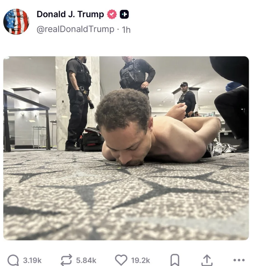 «Δεν είναι η πρώτη φορά που η Δημοκρατία μας δέχεται επίθεση από κάποιον που επιδιώκει να σκοτώσει», δήλωσε χαρακτηριστικά, ενώ μέσω του Truth Social εξήρε την «ταχύτητα και το θάρρος» των δυνάμεων ασφαλείας.