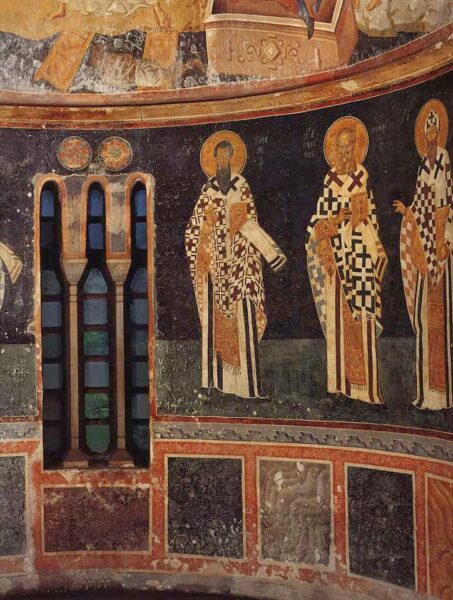 Σχετικές με τη μεγάλη διάδοση της λατρείας της Θεοτόκου είναι και οι απεικονίσεις των τεσσάρων μελωδών αγίων: του Ιωάννη Δαμασκηνού, του Κοσμά Υμνογράφου, του Θεοφάνη Γραπτού και του Ιωσήφ Υμνογράφου, που δημιούργησαν τη βασική μαριολογική υμνογραφία της Ορθοδοξίας.