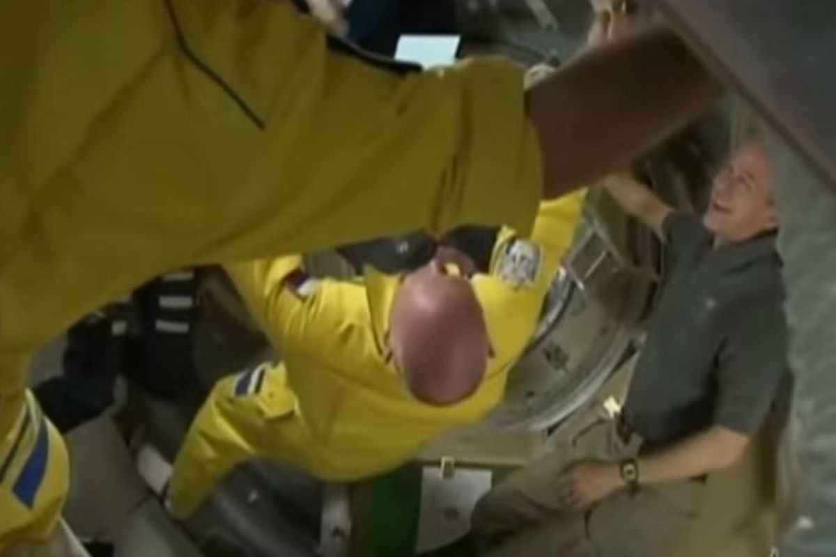 Ρώσοι κοσμοναύτες έφτασαν στον Διεθνή Διαστημικό Σταθμό φορώντας ρούχα των οποίων τα χρώματα έμοιαζαν με αυτά της ουκρανικής σημαίας.