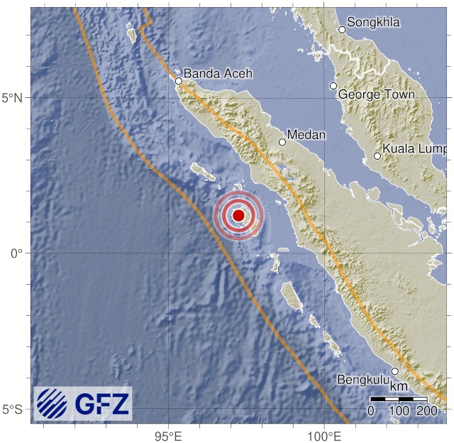 Σεισμός μεγέθους 5,9 Ρίχτερ έπληξε τη βόρεια περιοχή της Σουμάτρας στην Ινδονησία, σύμφωνα με το Γερμανικό Κέντρο Ερευνών Γεωεπιστημών (GFZ).
