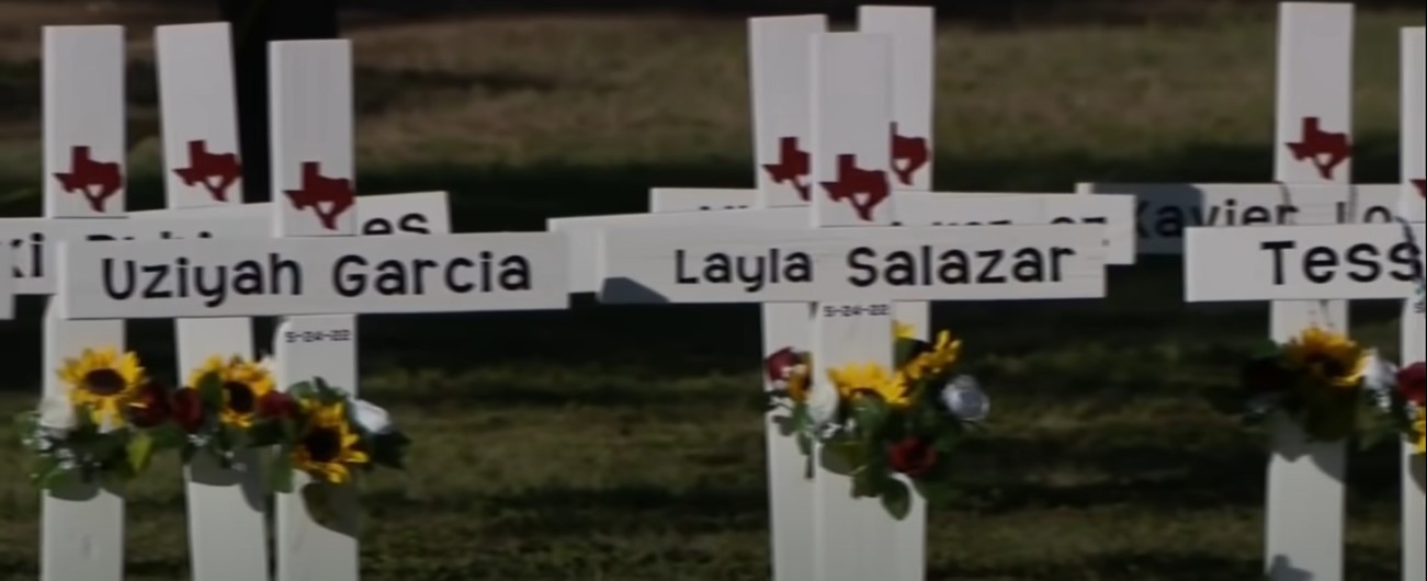 Όπως η γιαγιά της Αμερί, πολλοί κάτοικοι της Ουβάλντε είχαν συγκεντρωθεί μπροστά από το σχολείο Ρομπ, όπου 21 μικροί σταυροί από ξύλο έχουν στηθεί για τα 19 παιδιά και τις 2 δασκάλες που σκοτώθηκαν.
