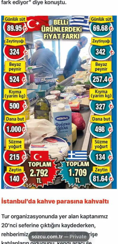 Οι πληροφορίες που επικαλείται το δημοσίευμα αναφέρουν ότι ένα καλάθι προϊόντων που στην Τουρκία κοστίζει 3.709 λίρες, στην Ελλάδα κοστίζει μόλις 2.433 λίρες. Η διαφορά αυτή καθιστά το ταξίδι οικονομικά συμφέρον, παρά το κόστος του εισιτηρίου και της μετακίνησης.
