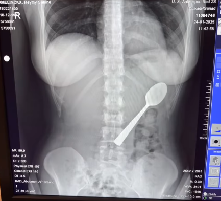 Οι γιατροί αργότερα επιβεβαίωσαν ότι το κουτάλι ήταν πολύ μεγάλο για να περάσει φυσικά και προγραμματίστηκαν γαστροσκόπηση για να το αφαιρέσουν. Η Reymy Amelinckx περιέγραψε την αναμονή για τη διαδικασία ως οδυνηρή.