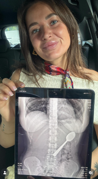 «Δεν ένιωσα καθόλου άσχημα – οπότε δεν είπα τίποτα γι’ αυτό αμέσως. Μόνο μετά το δείπνο συνειδητοποίησα ότι ήταν στην πραγματικότητα αρκετά σοβαρό. Υπήρχε ένα κουτάλι 17 εκατοστών στο στομάχι μου. Στο διαδίκτυο, παντού έλεγαν το ίδιο πράγμα: πήγαινε κατευθείαν στα επείγοντα. Μόνο τότε συνειδητοποίησα πόσο επικίνδυνο θα μπορούσε να είναι.»