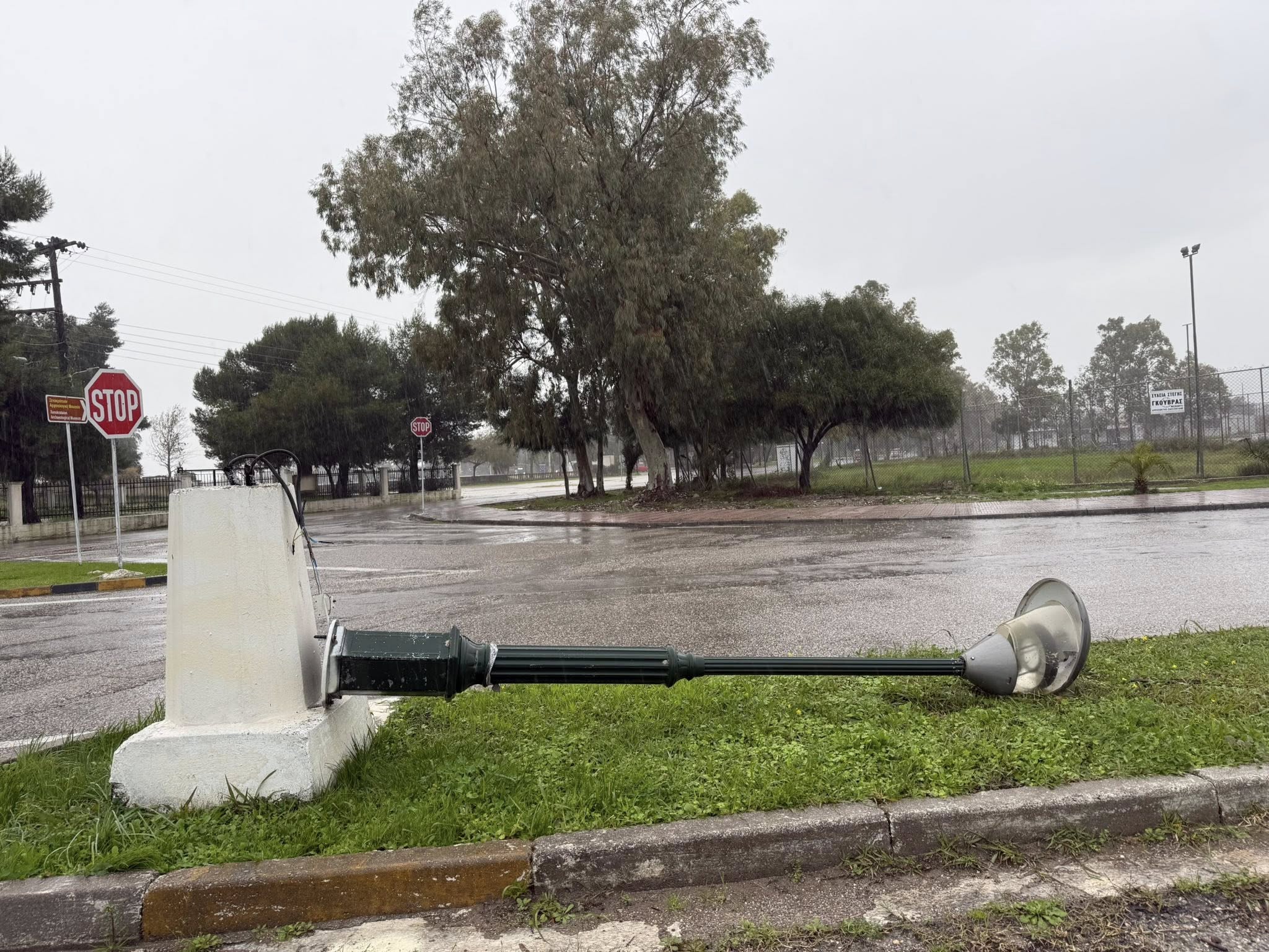 Ο αέρας ξήλωσε δέντρα, στέγες και μεγάλες μεταλλικές κατασκευές, με χαρακτηριστικό παράδειγμα μεγάλη τσίγκινη πέργκολα, η οποία παρασύρθηκε, έπεσε πάνω σε ευκάλυπτο και στη συνέχεια κατέληξε στη μέση του δρόμου, δημιουργώντας σοβαρό κίνδυνο.