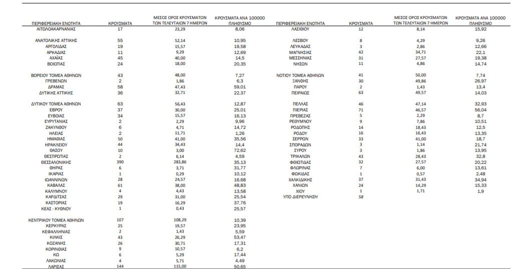 Στην Αττική καταγράφονται τα εξής κρούσματα: