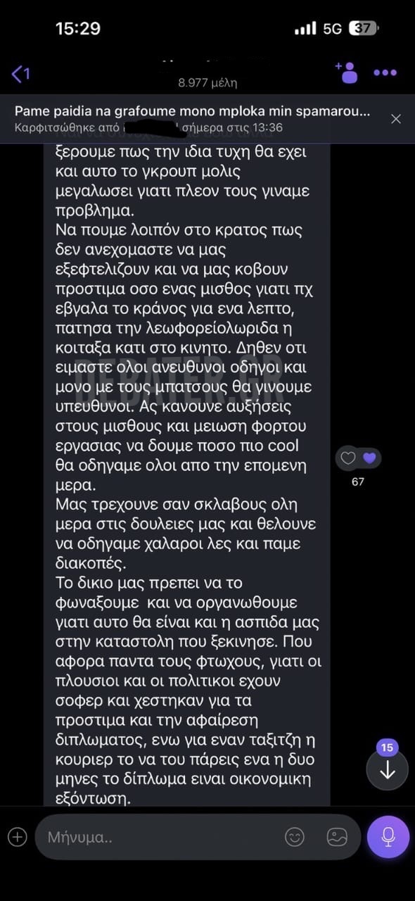 Στο ίδιο κανάλι εμφανίζεται μήνυμα από μέλος που εκφράζει οργή για τα πρόστιμα και την αστυνόμευση, γράφοντας μεταξύ άλλων: