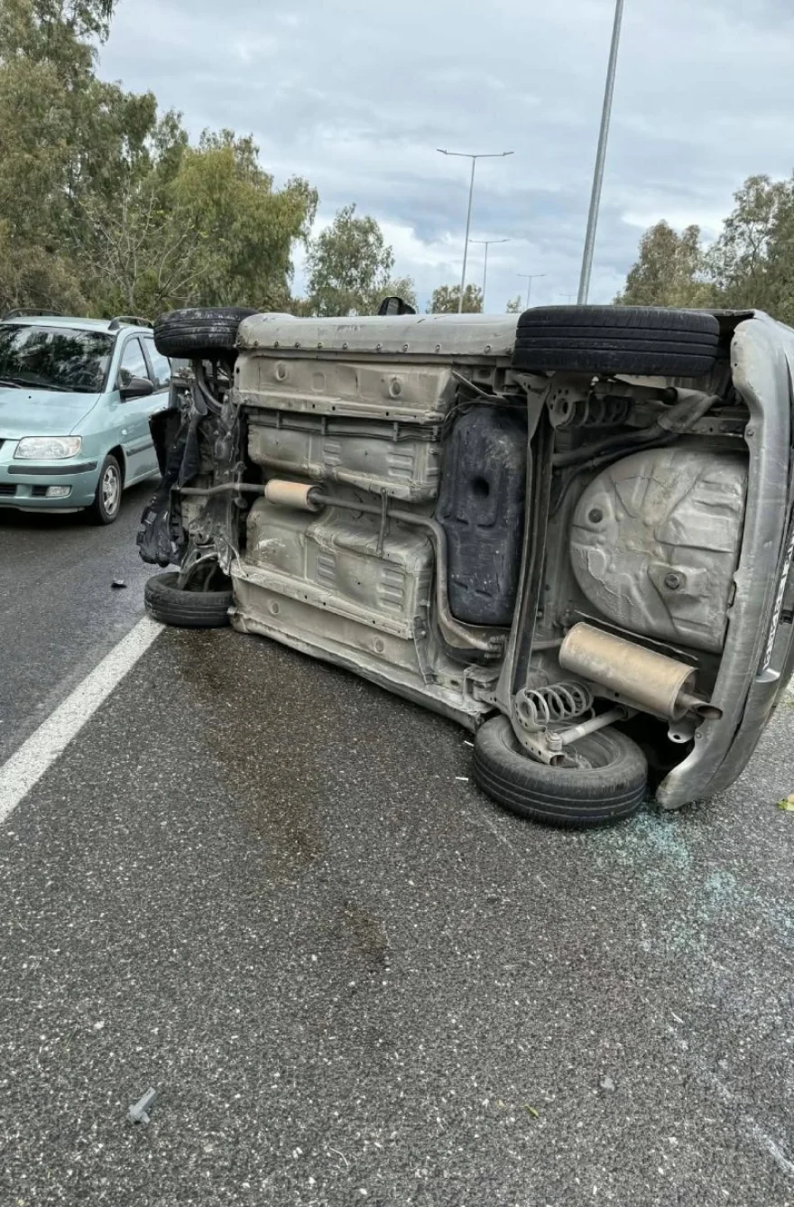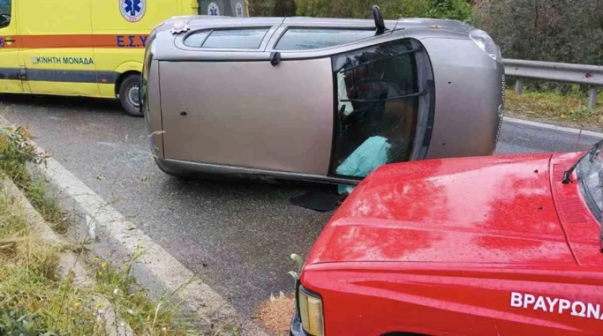 Αρτέμιδα: Αυτοκίνητο πέρασε πάνω απο διαχωριστικό και τούμπαρε στη μέση του δρόμου (Εικόνες & Βίντεο)