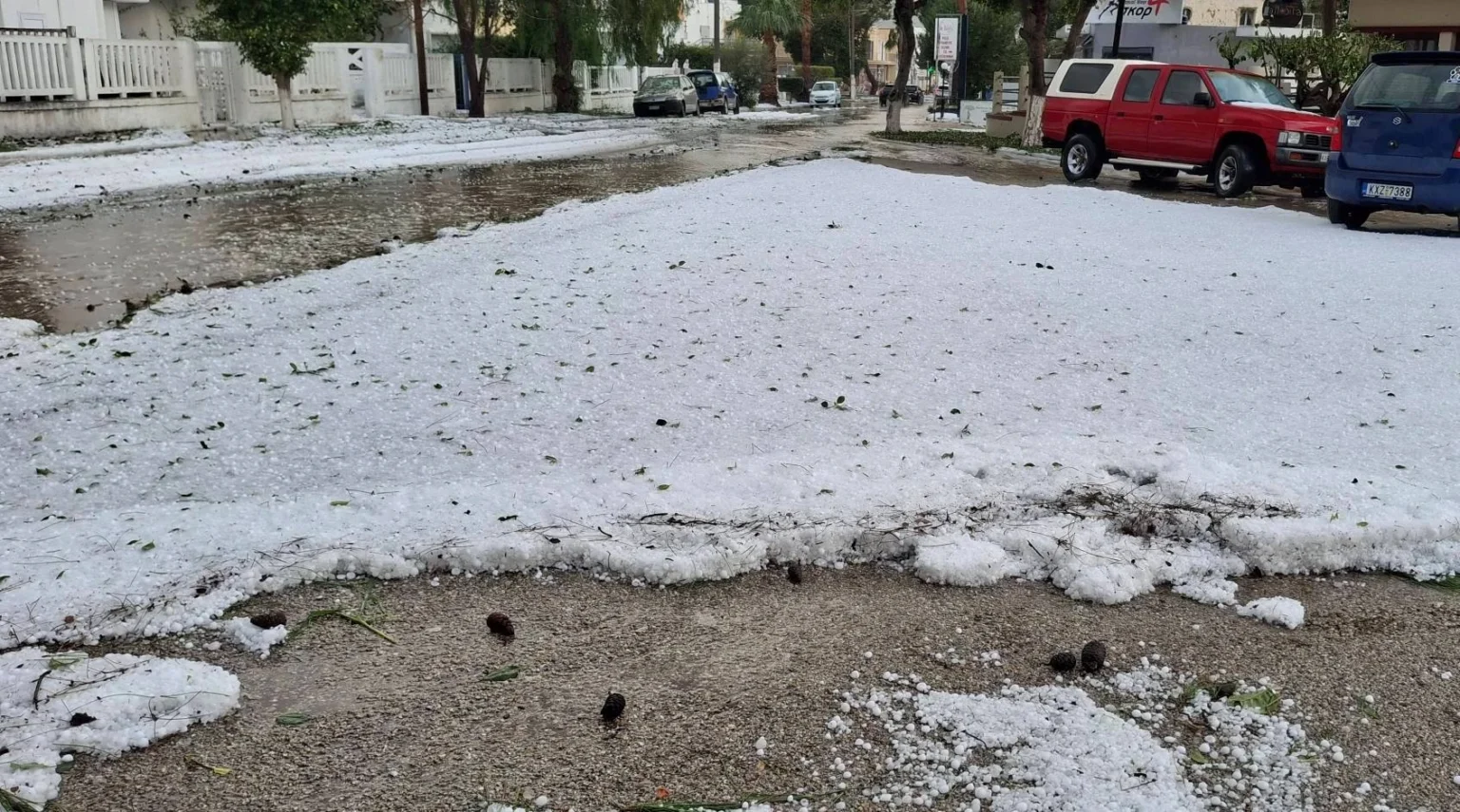 Μεγάλη ανησυχία προκαλεί η κατάσταση στις καλλιέργειες, καθώς σε αρκετές περιοχές το χαλάζι έπεσε με πολύ ένταση και για αρκετή ώρα.
