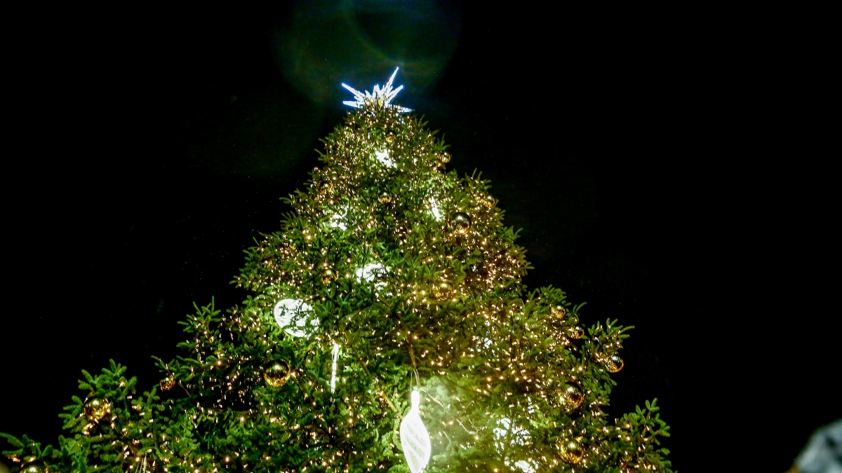 Κόκκινες και χρυσές μπάλες, στολίδια από φωτισμένο plexiglass σε διάφορα σχέδια, καθώς και 3.000 μέτρα λαμπερά φωτάκια, αναδεικνύουν τη χαρούμενη ατμόσφαιρα των ημερών.