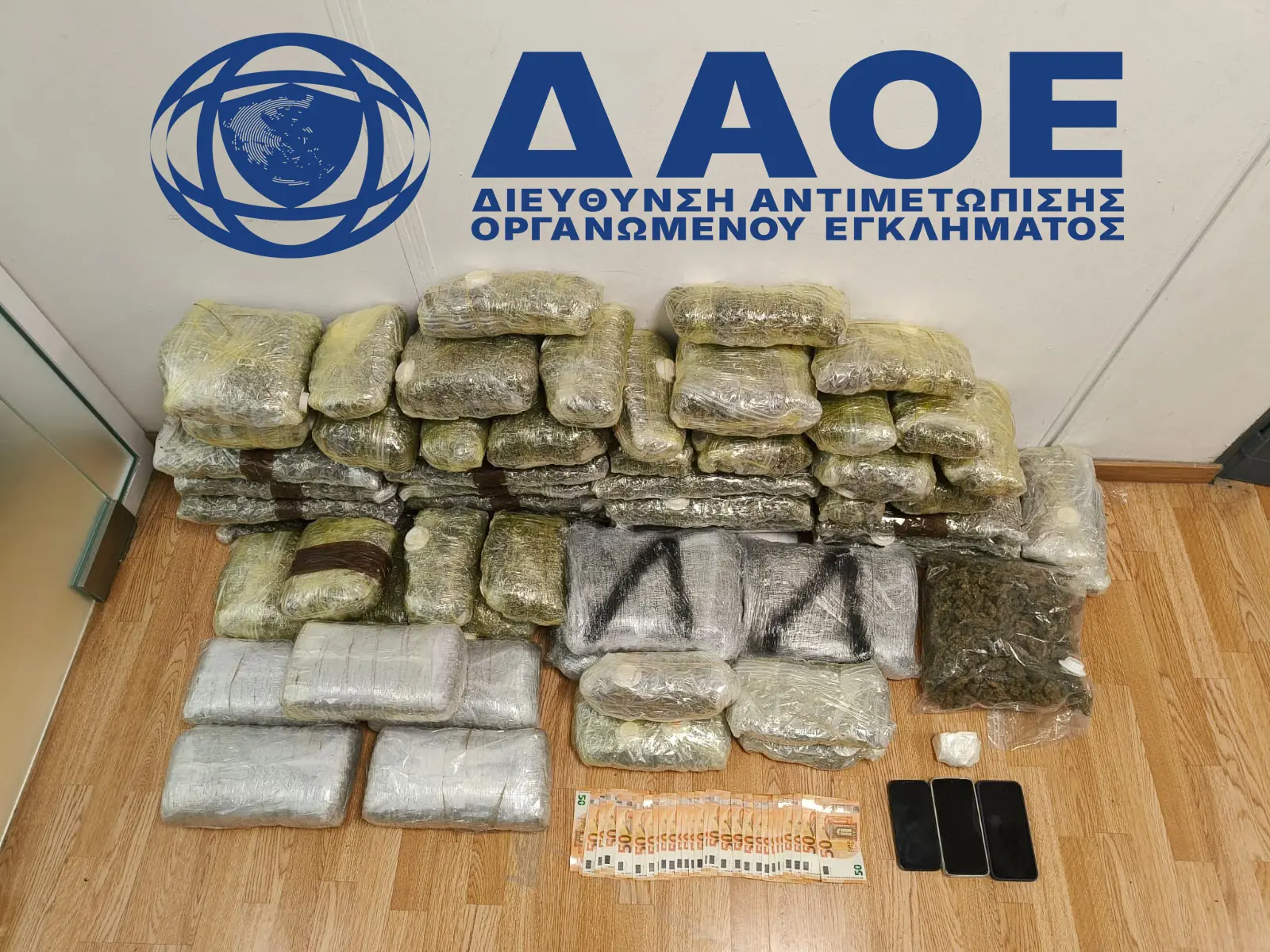 Ακολούθησε έρευνα στην οικία του 56χρονου κατά την οποία κατελήφθη να κατέχει με σκοπό τη διακίνηση -57- νάιλον συσκευασίες που περιείχαν ακατέργαστη κάνναβη, συνολικού μικτού βάρους -49- κιλών και -150- γραμμαρίων και νάιλον συσκευασία που περιείχε ακατέργαστη κάνναβη, μικτού βάρους -740- γραμμαρίων.