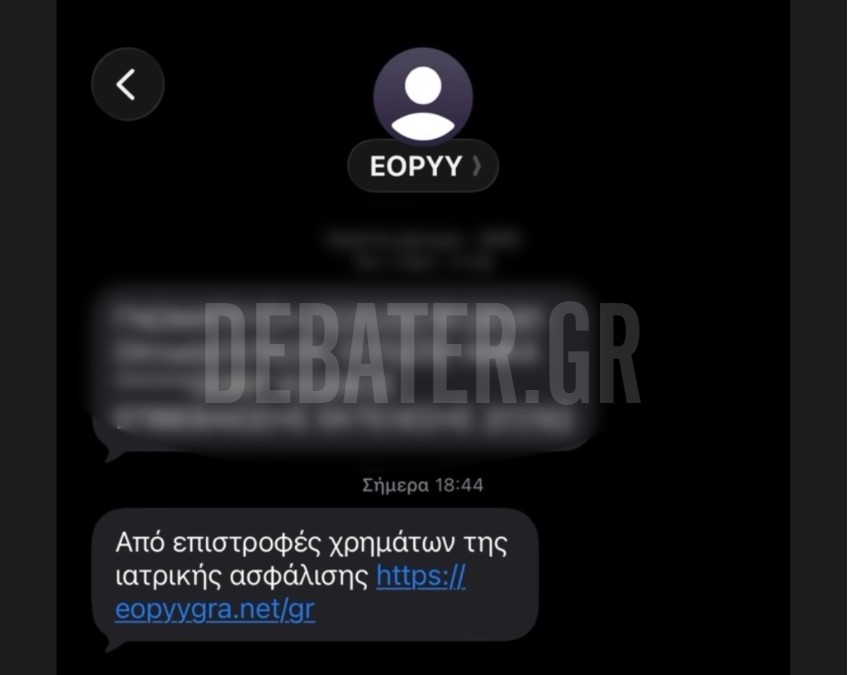 Αυτό είναι το SMS-απάτη με “αποστολέα” τον ΕΟΠΥΥ για επιστροφή χρημάτων (φωτογραφία)