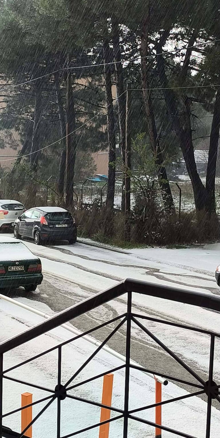Ισχυρά καιρικά φαινόμενα πλήττουν τον Πολύγυρο Χαλκιδικής, όπου η κακοκαιρία «Erminio» έχει μετατρέψει το τοπίο σε σκηνικό που θυμίζει χειμώνα, λόγω της έντονης χαλαζόπτωσης.