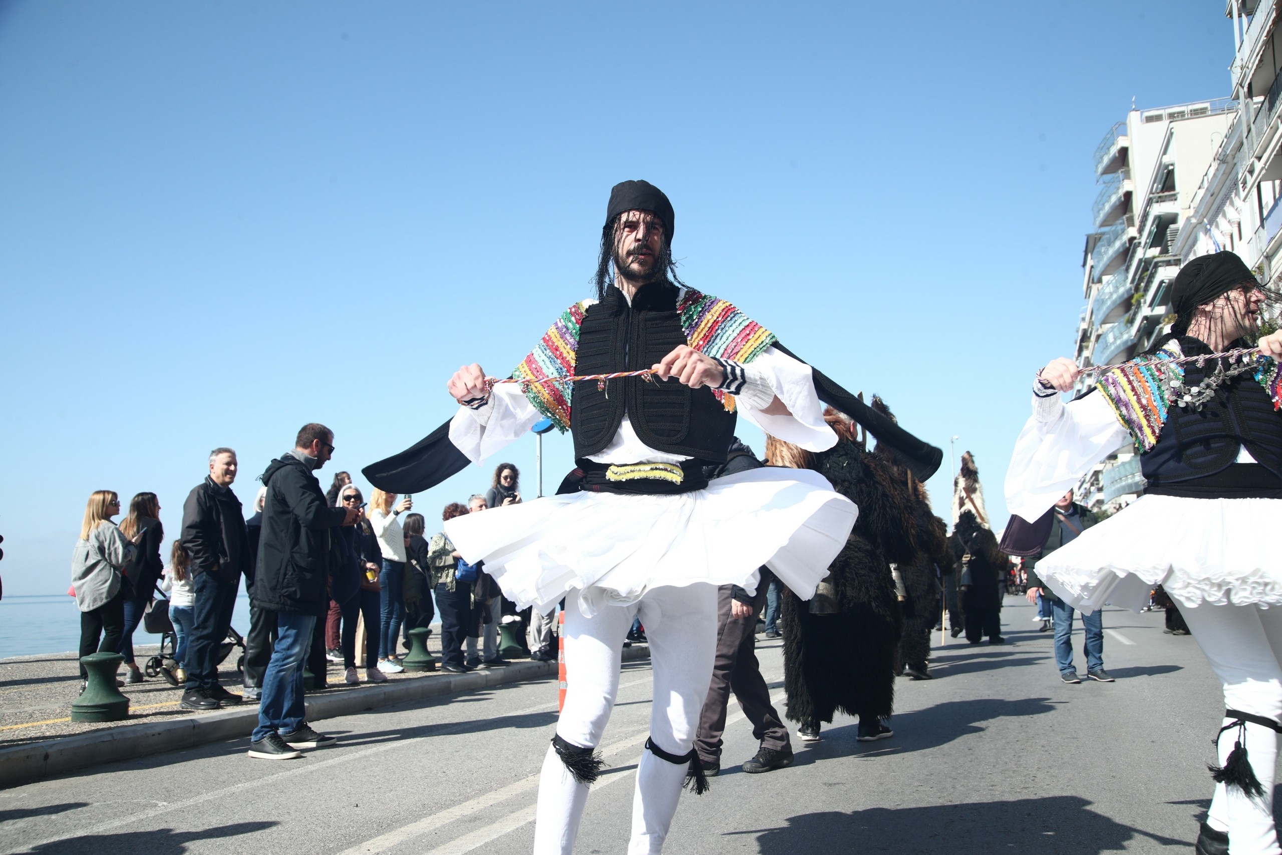 Οι «κουδουνοφόροι» φορώντας περίτεχνες στολές κυρίως από δέρματα ζώων, καπέλα και μάσκες συναντήθηκαν στο Λευκό Πύργο και από κει παρέλασαν στη Λεωφόρο Νίκης με κατάληξη στην πλατεία Αριστοτέλους.