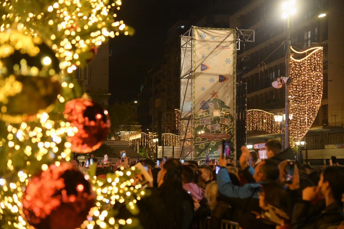 Η νύχτα έγινε μέρα στον Πειραιά, όταν τα 120.000 λαμπιόνια του επιβλητικού χριστουγεννιάτικου δέντρου άναψαν και ο ουρανός φωτίστηκε από εντυπωσιακά πυροτεχνήματα.