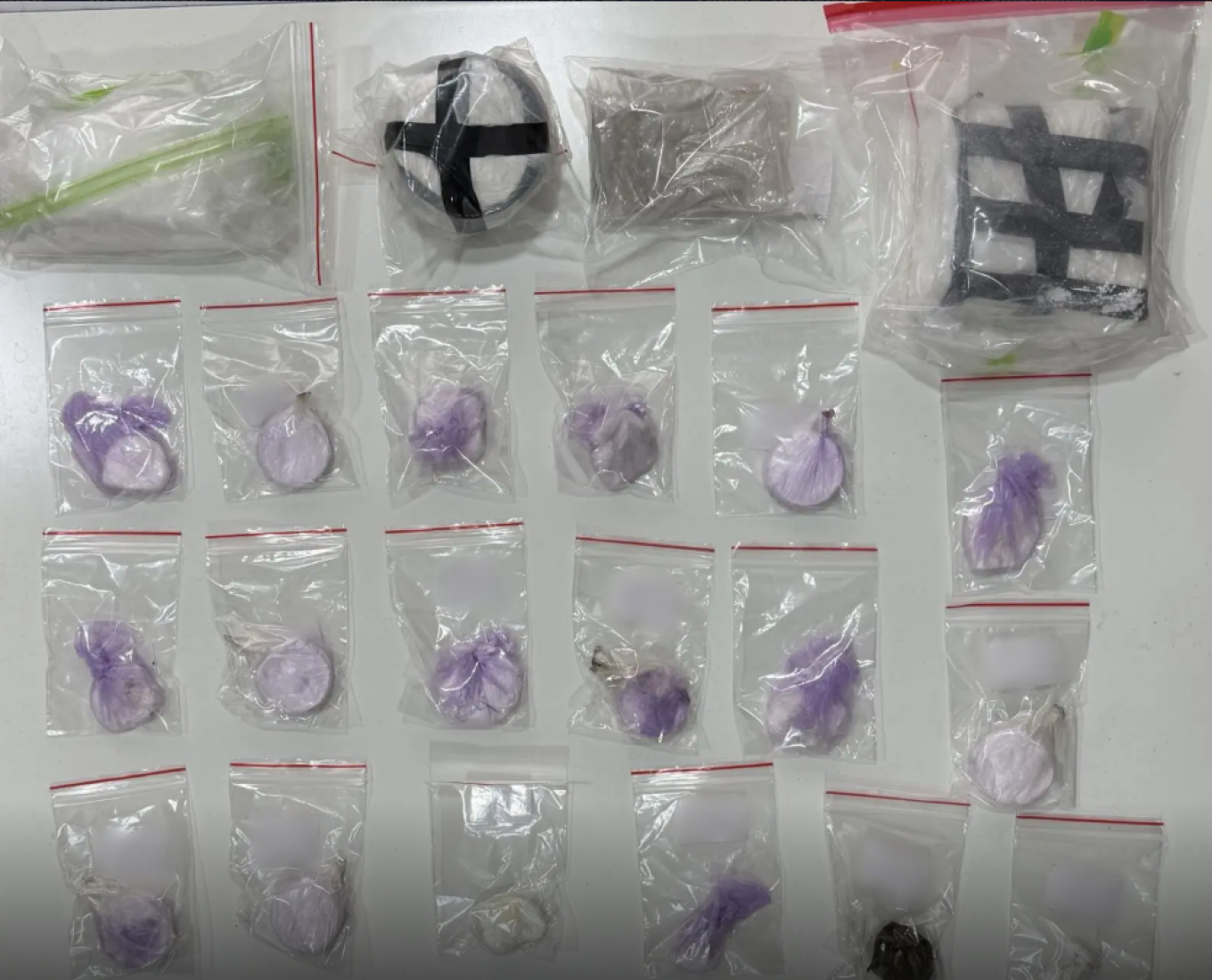 -πλήθος νάιλον περιτυλιγμάτων, πρόσφορων για τον επιμερισμό και την συσκευασία ναρκωτικών ουσιών,