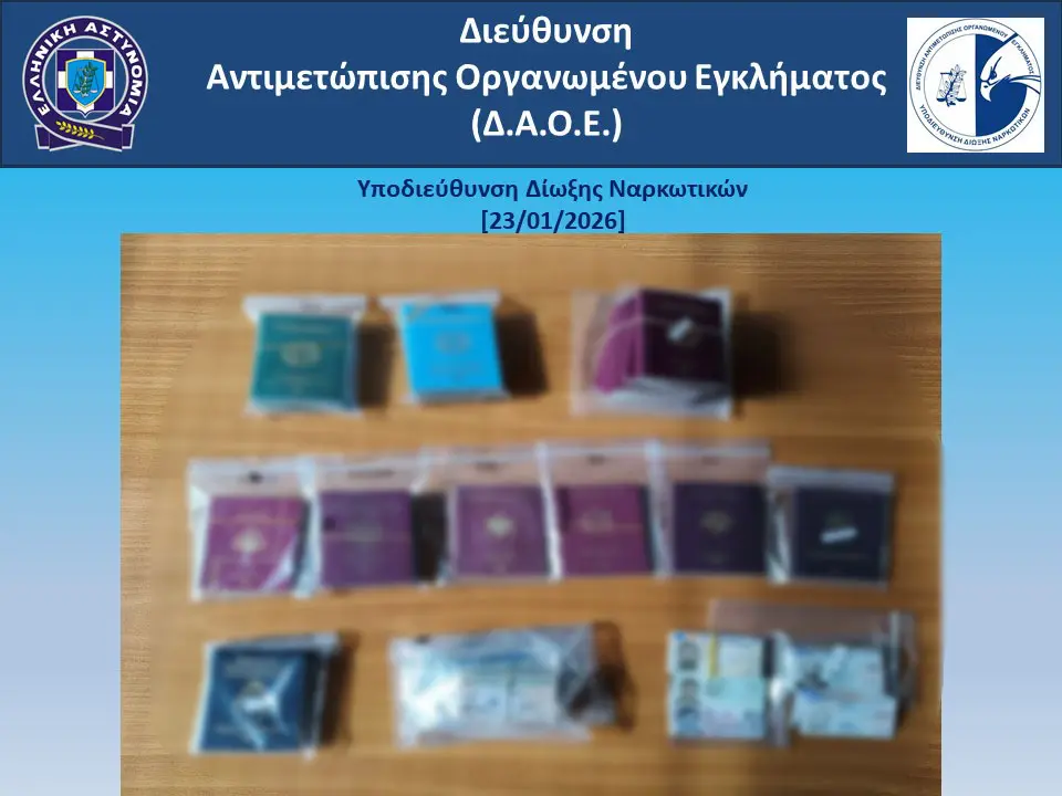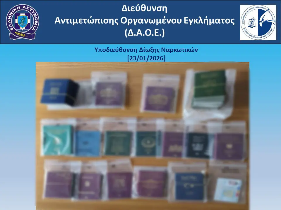 -209- αμφιβόλου γνησιότητας έγγραφα ταυτοπροσωπίας – ταξιδιωτικά έγγραφα (-130- διαβατήρια διαφόρων κρατών, -60- δελτία ταυτοτήτων διαφόρων κρατών, -16- δελτία αδειών διαμονής διαφόρων κρατών και -3- άδειες ικανότητας οδηγήσεως) και