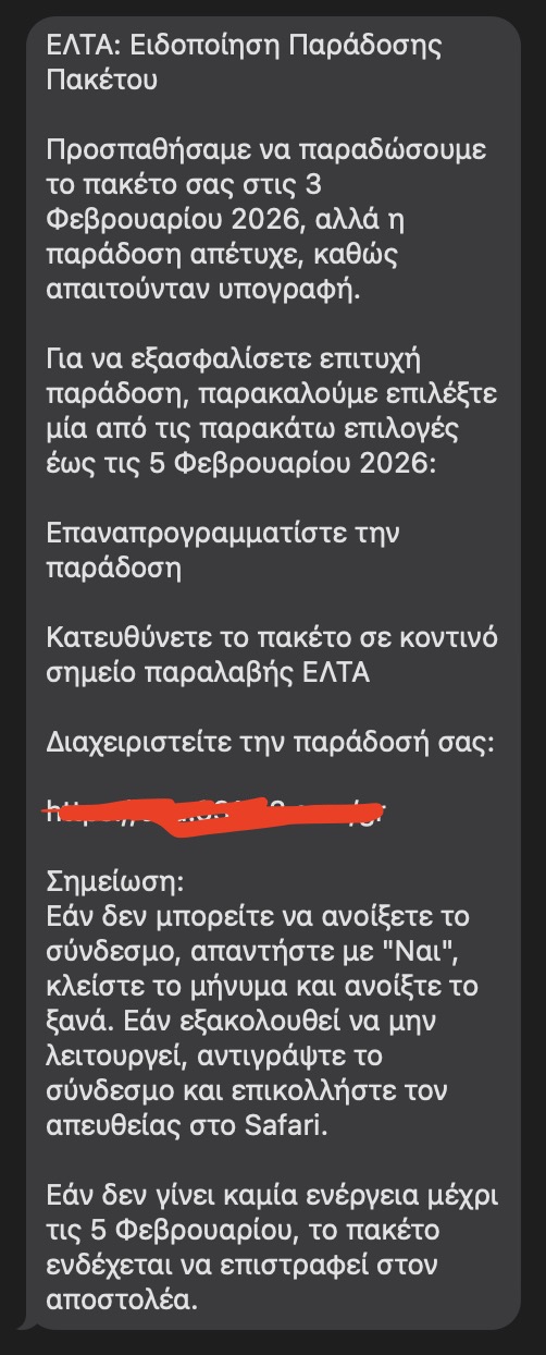 Τις τελευταίες ημέρες παρατηρείται μεγάλη αύξηση των αποπειρών ηλεκτρονικής απάτης μέσω παραπλανητικών SMS, τα οποία έχουν στόχο να υποκλέψουν τραπεζικά στοιχεία και προσωπικά δεδομένα ανυποψίαστων πολιτών. Με το όνομα των ΕΛΤΑ οι επιτήδειοι ισχυρίζονται ότι απέτυχε μία παράδοση δέματος.