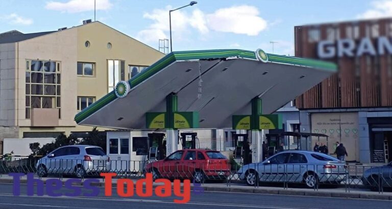 Σε πρατήριο υγρών καυσίμων επί της οδού Λαγκαδά, ο θυελλώδης Βαρδάρης κατάφερε να λυγίσει το στέγαστρο.