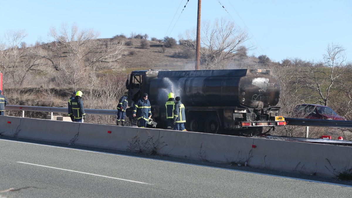 Ο οδηγός του βυτιοφόρου πρόλαβε να βγει από το όχημα και είναι καλά στην υγεία του.