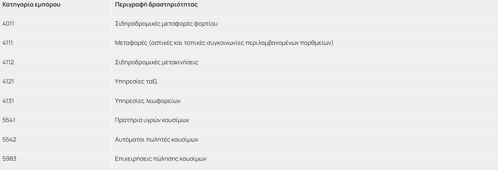 Το χρηματικό ποσό που πιστώνεται στην ψηφιακή χρεωστική κάρτα Fuel Pass III, δύναται να χρησιμοποιείται αποκλειστικά από τον δικαιούχο για την πραγματοποίηση αγοράς καυσίμων ή κατά τη μετακίνησή του με τα Μέσα Μαζικής Μεταφοράς με χρήση απευθείας στους επικυρωτές όλων των μέσων, καθώς και σε επιβατηγά αυτοκίνητα δημοσίας χρήσης-ταξί. Καλύπτει ιδίως τους εξής Κωδικούς Κατηγορίας Εμπόρου (Merchant Category Codes – MCC):