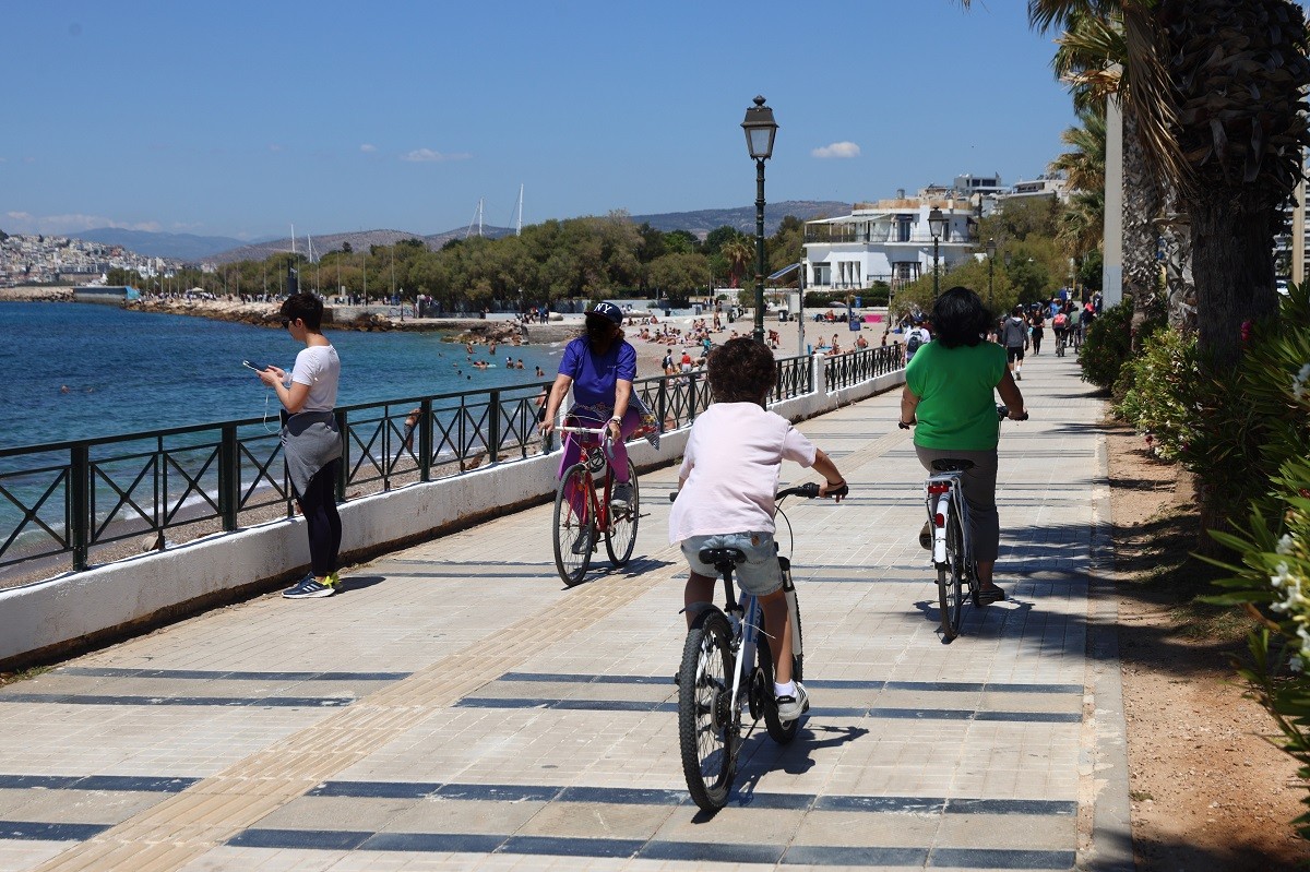 Πλήθος κόσμου βρέθηκε από το πρωί της Δευτέρας του Πάσχα 6/5 στον Φλοίσβο στο Παλαιό Φάληρο προκειμένου είτε να απολαύσει τη θάλασσα είτε να κάνει βόλτα στην παραλία.