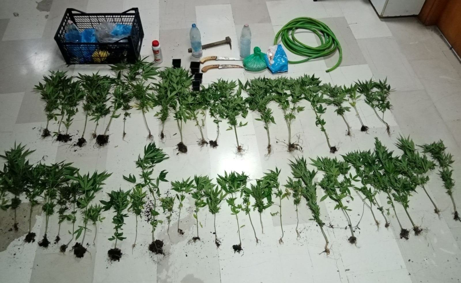 Στο πλαίσιο διερεύνησης της υπόθεσης βρέθηκαν συνολικά και κατασχέθηκαν, 47 δενδρύλλια κάνναβης, εξοπλισμός ποτίσματος και αγροτικά εργαλεία στον χώρο της φυτείας.